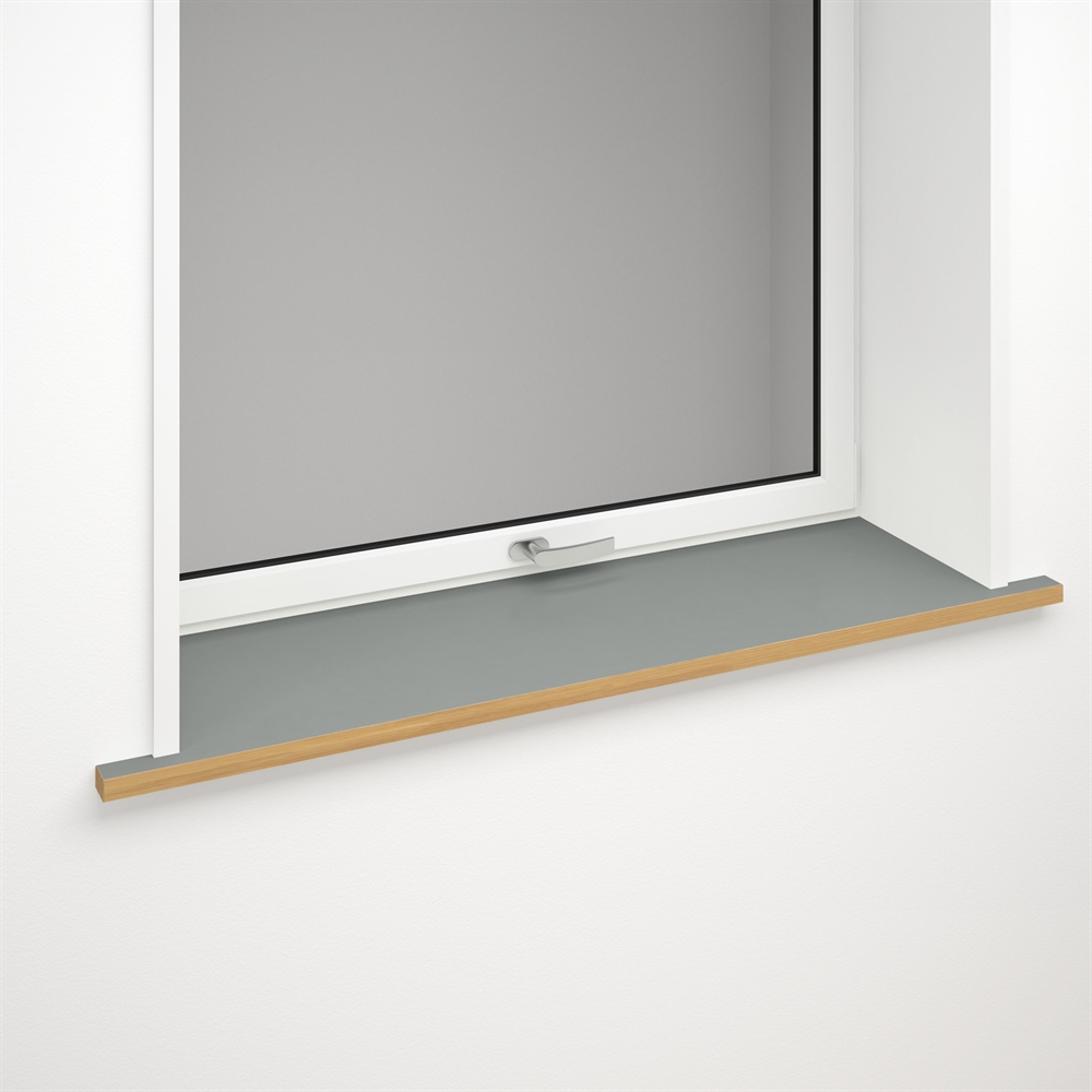 Flot vindueskarm i grå linoleum med valgfri forkant.