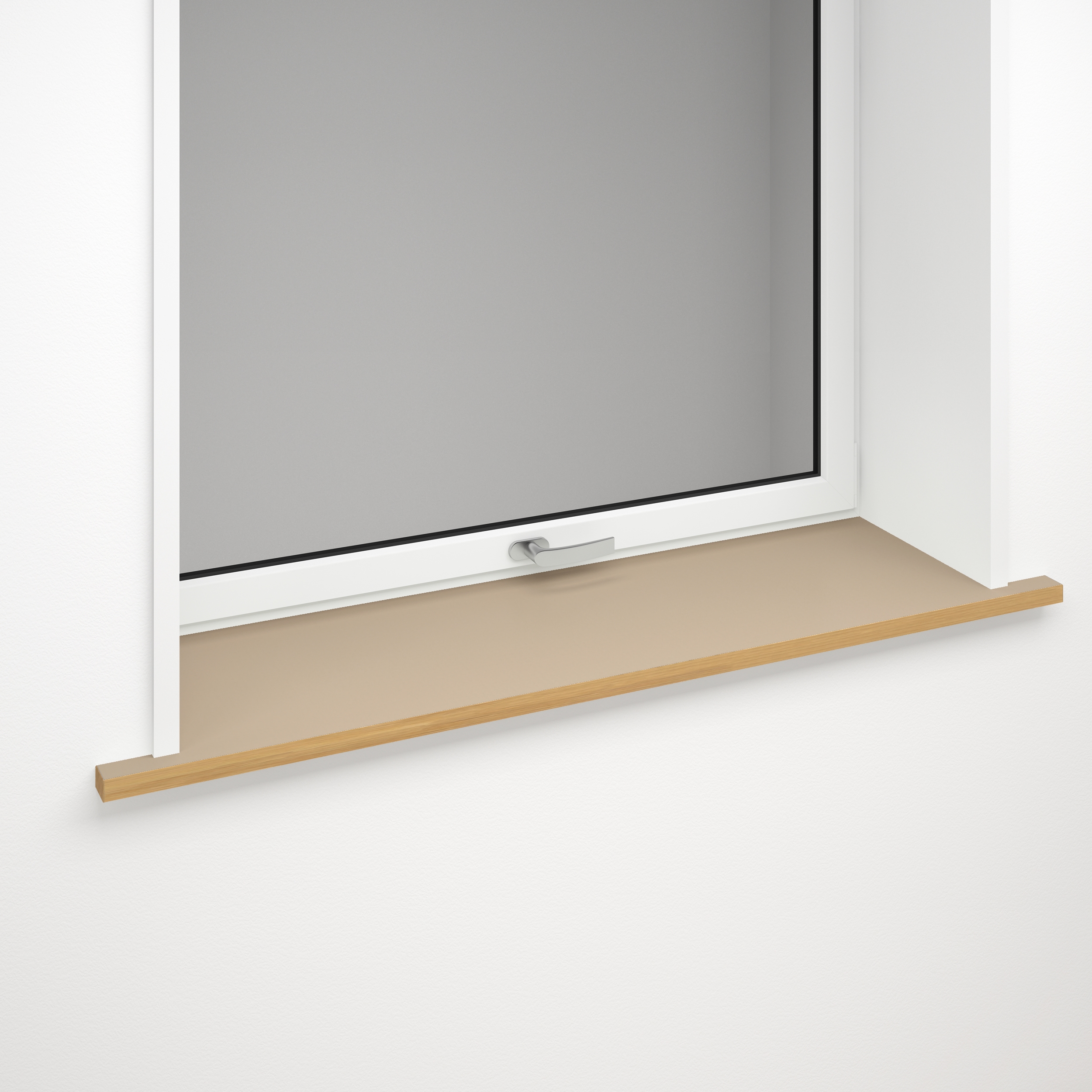 Vinduesbundstykket består af en MDF-plade beklædt med 2 mm linoleum, som har en elegant mat overflade og er meget behagelig at røre ved.